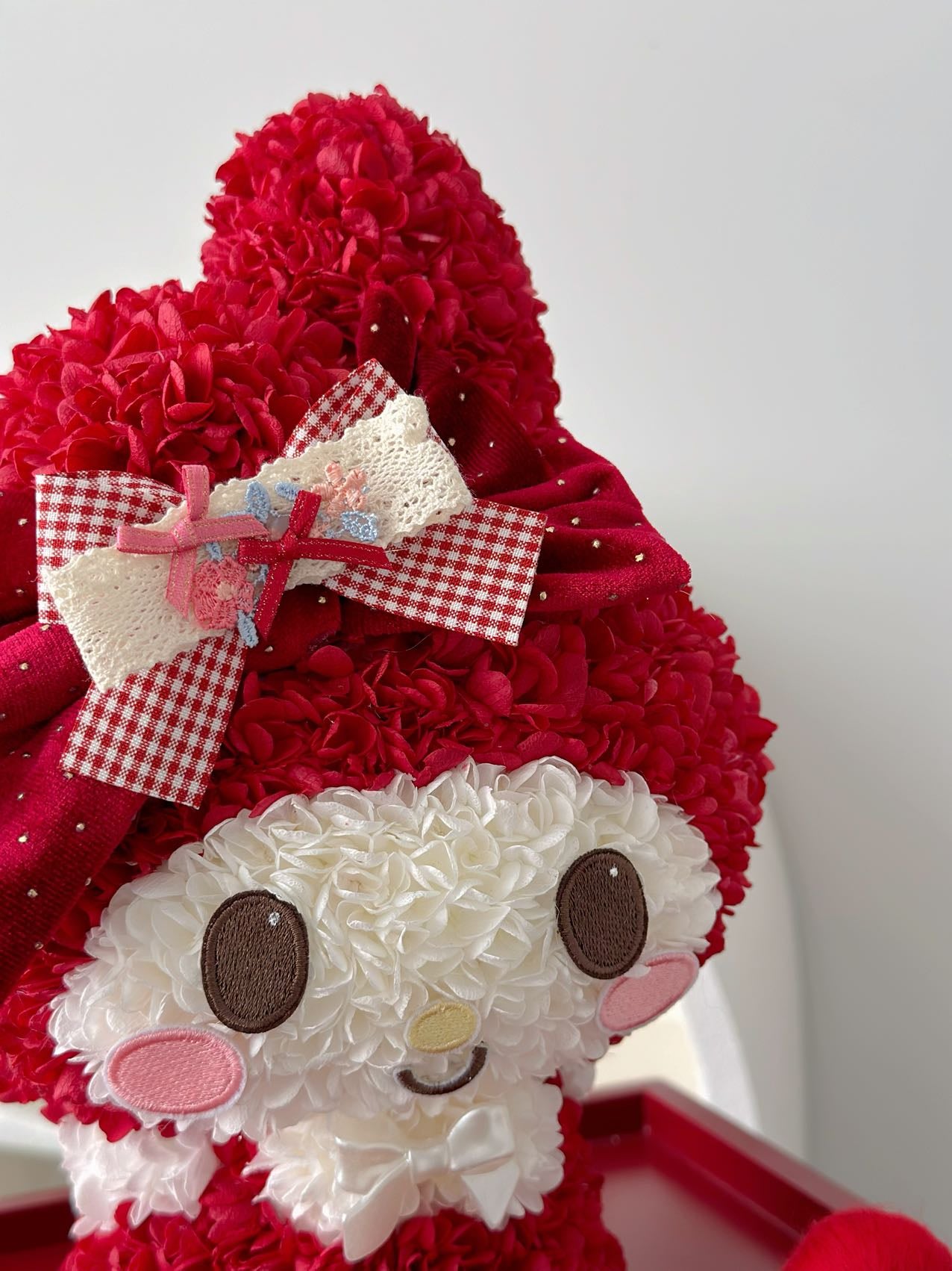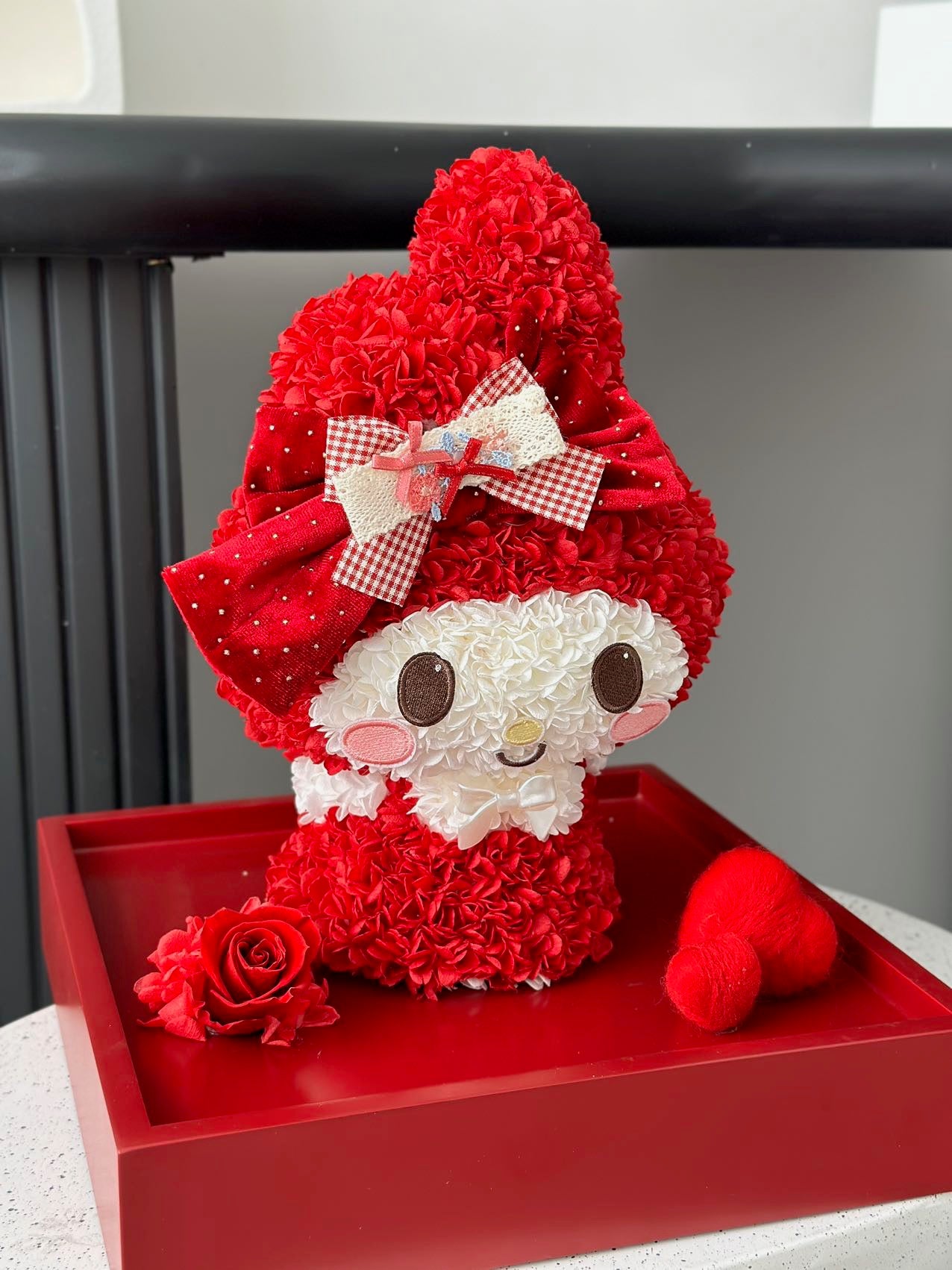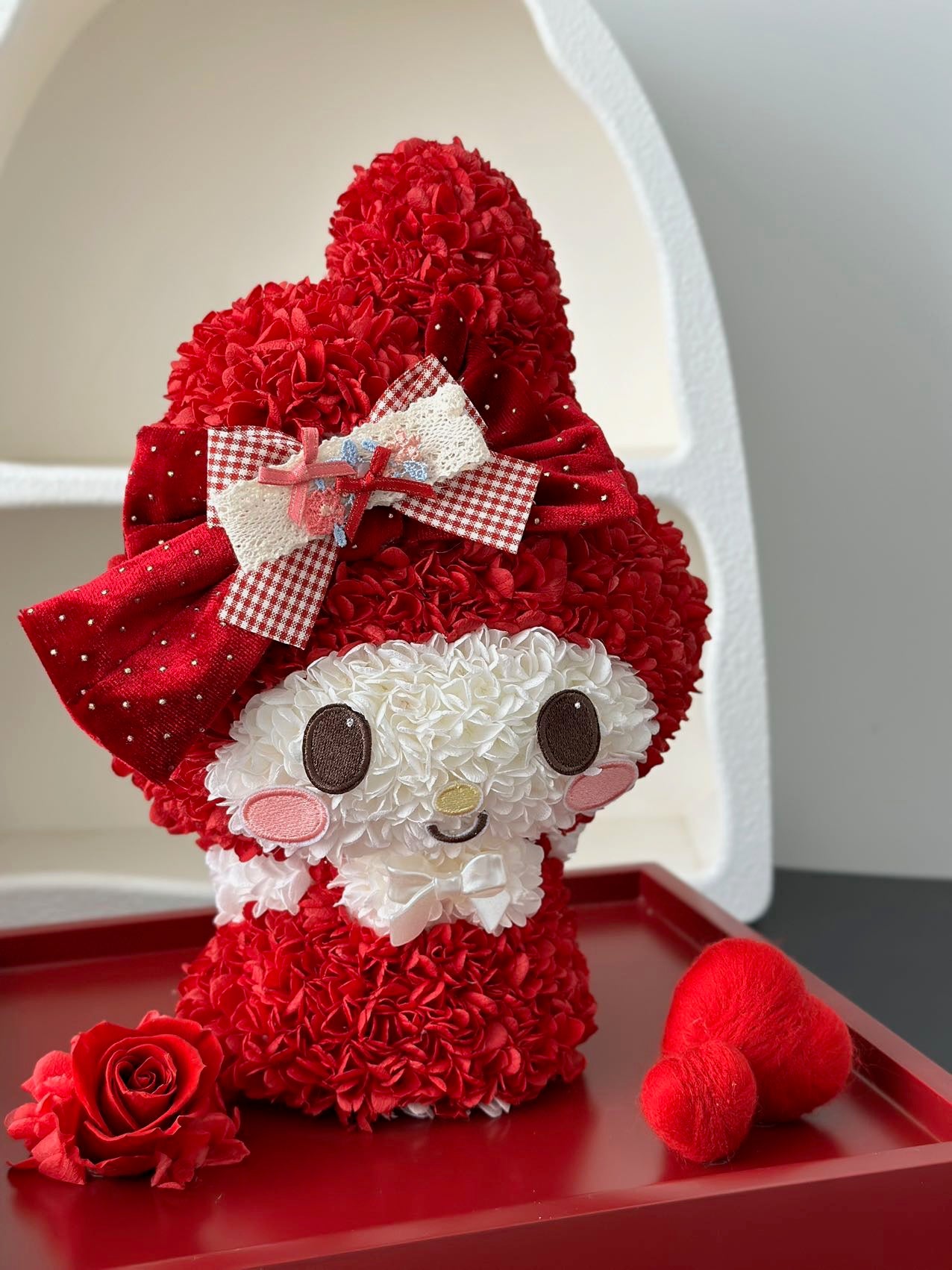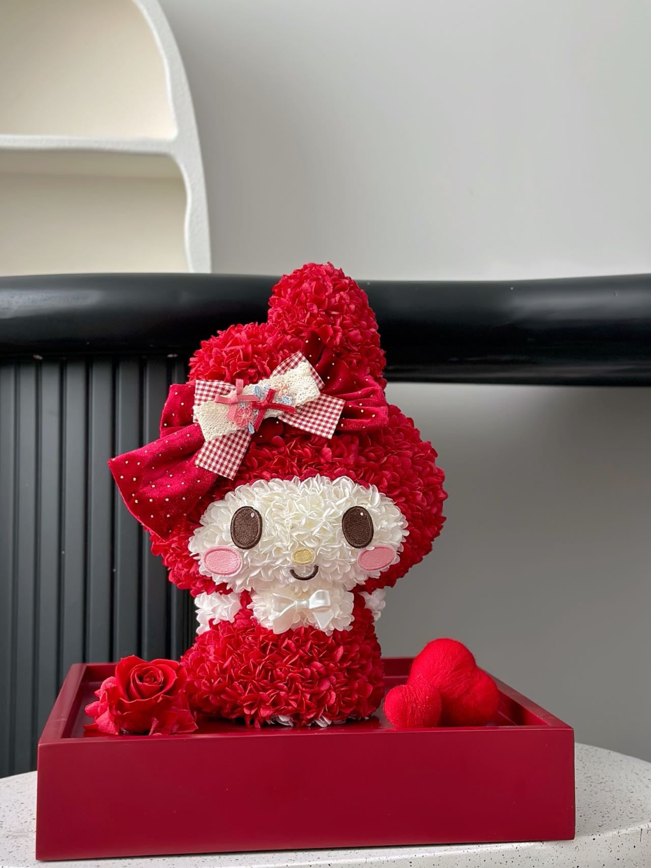 Dressed in a gown of vibrant red blossoms and crowned with a charming bow, this preserved-flower Amour Melody radiates warmth and love. Her soft blush cheeks and gentle smile capture the magic of innocence and affection, making her the perfect gift for someone special. Whether as a romantic gesture or a sweet keepsake, Amour Melody whispers a timeless promise: love is always in season.