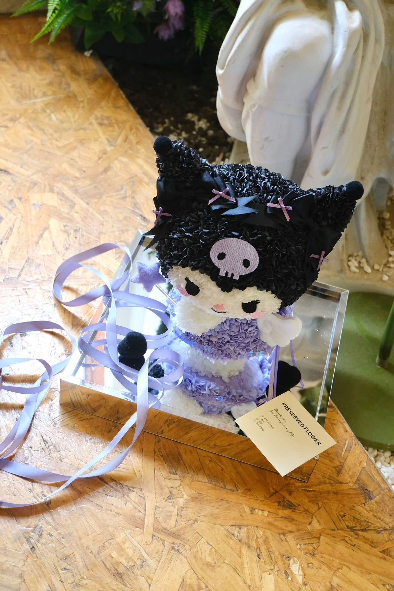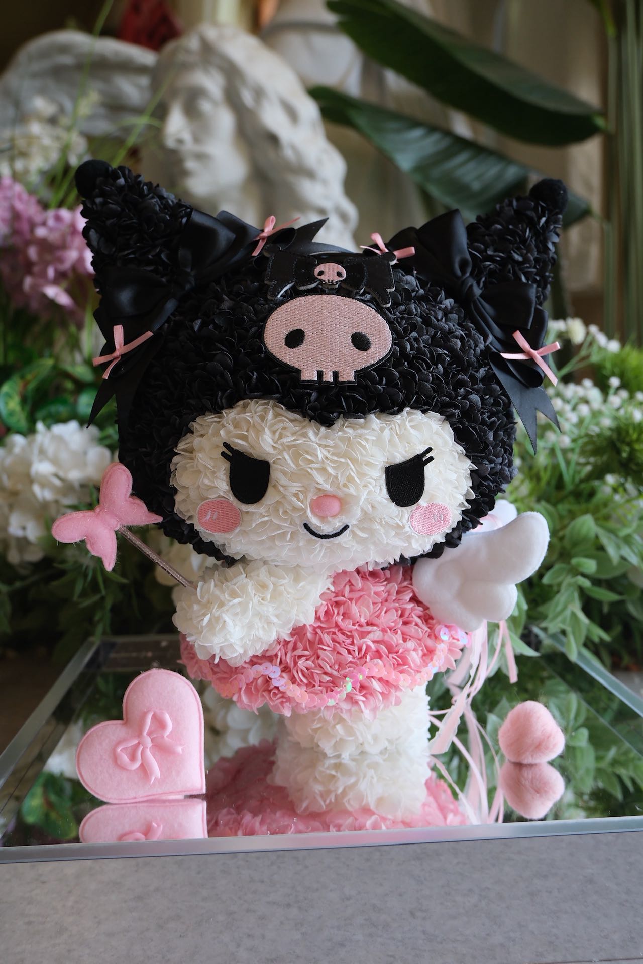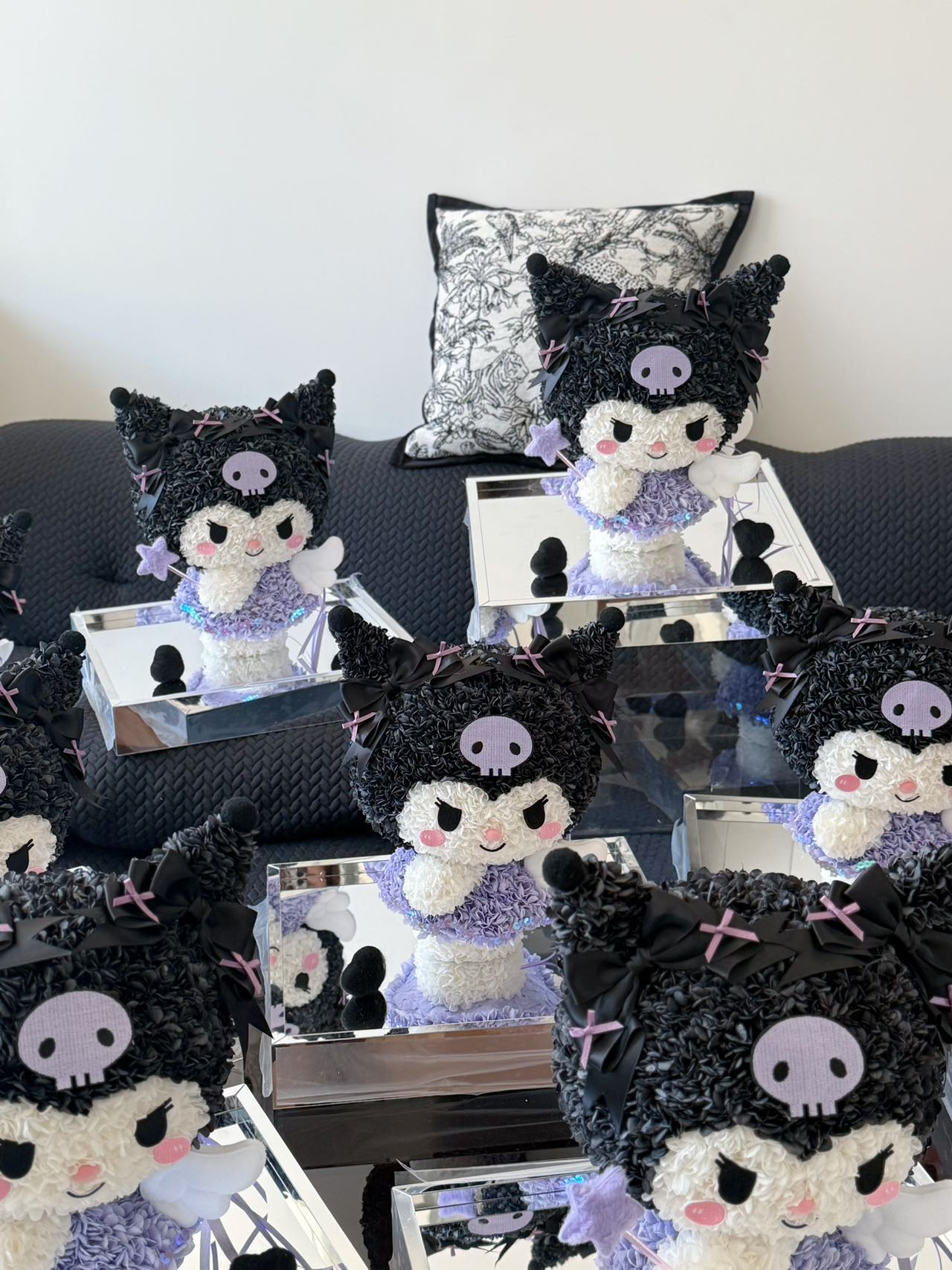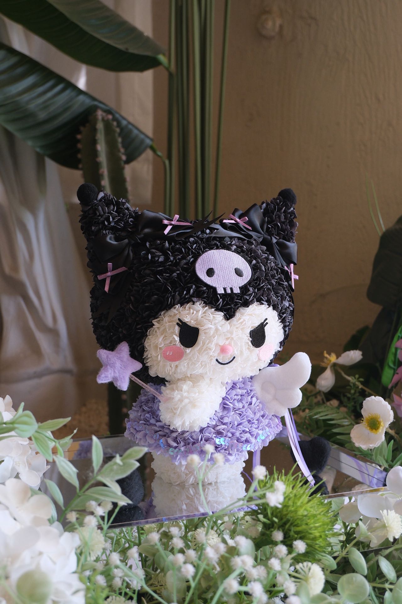 Dressed in soft lilac petals and sparkling sequins, Angel Kuromi carries both mischief and magic in her smile. With her tiny wings, star wand, and signature black hood adorned with bows, she’s a playful guardian of love and wishes. Equal parts sweet and sassy, she makes the perfect gift for someone who loves a touch of charm with a sprinkle of attitude.