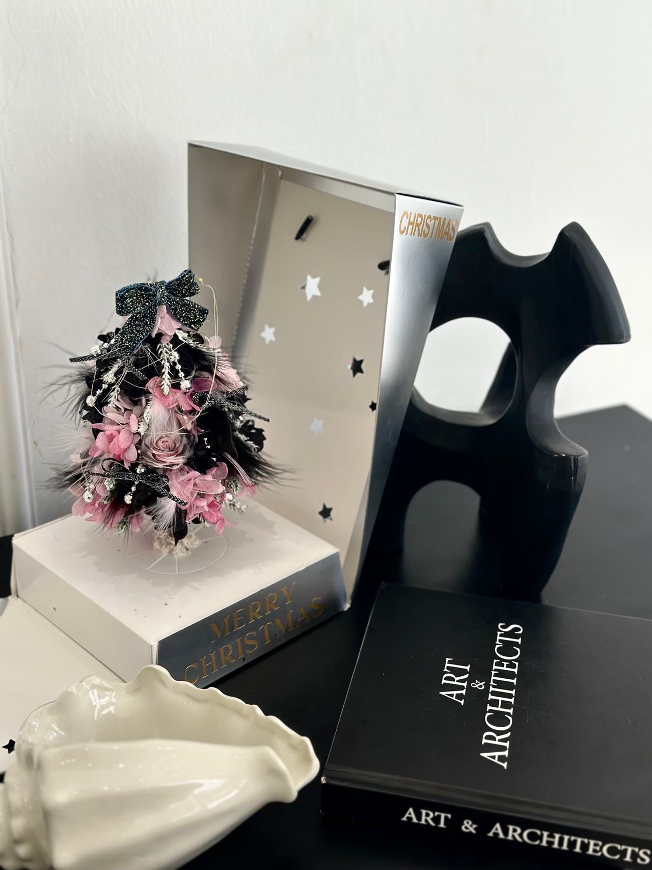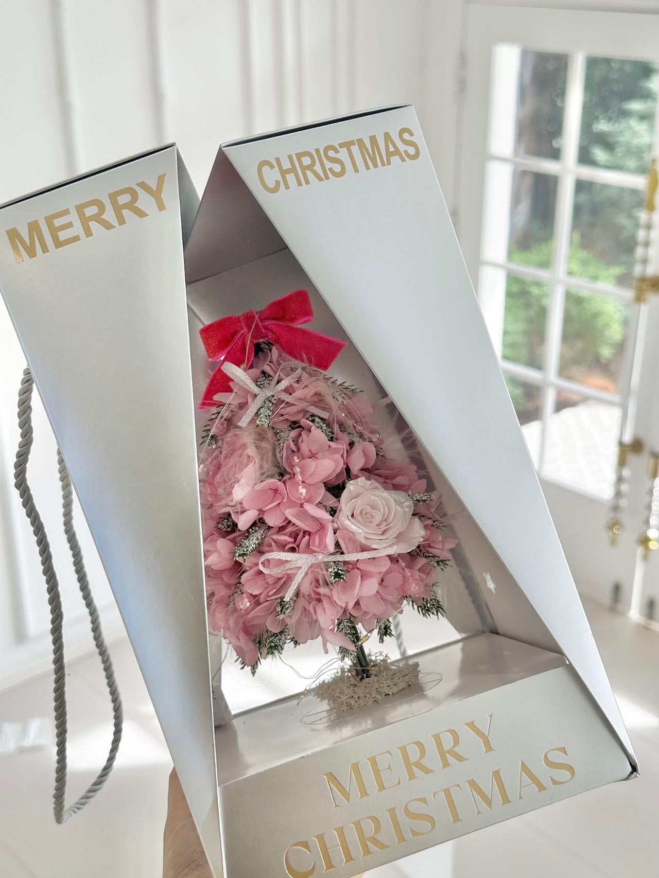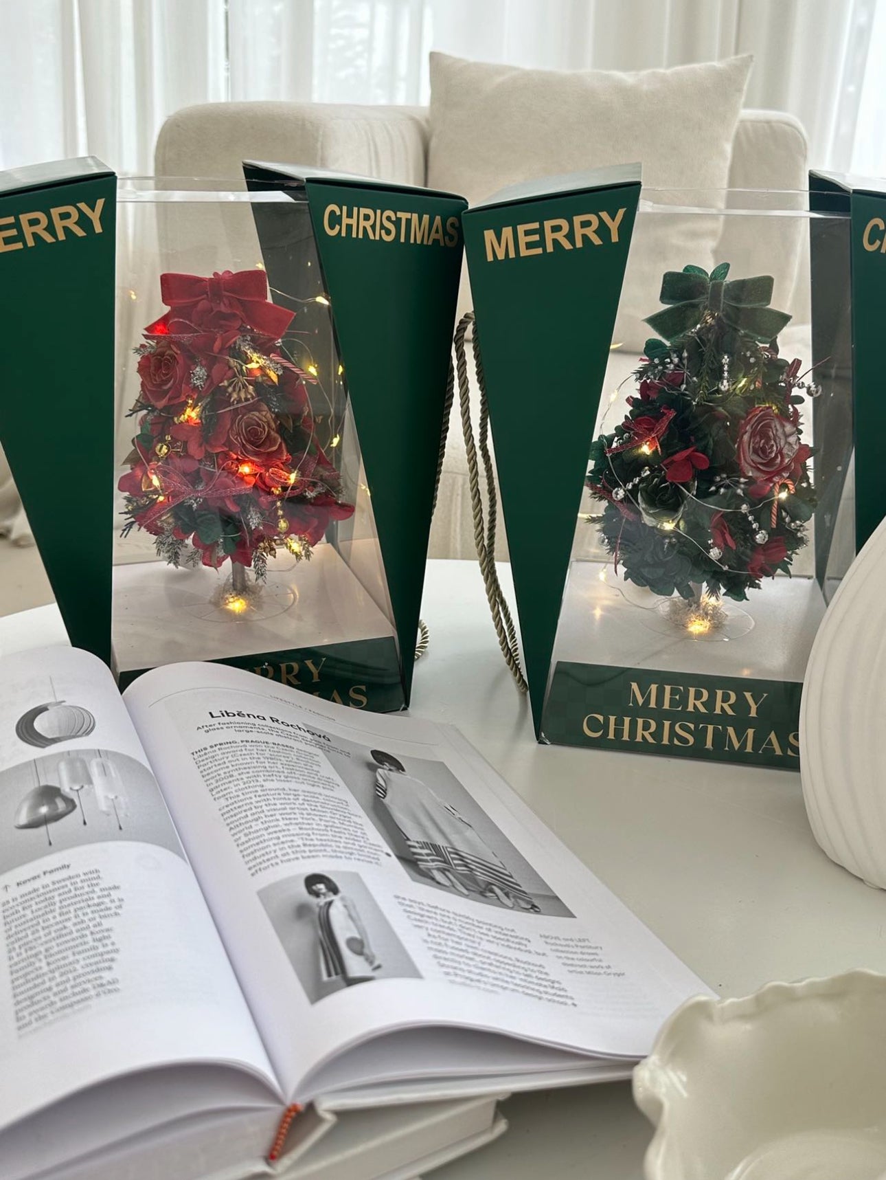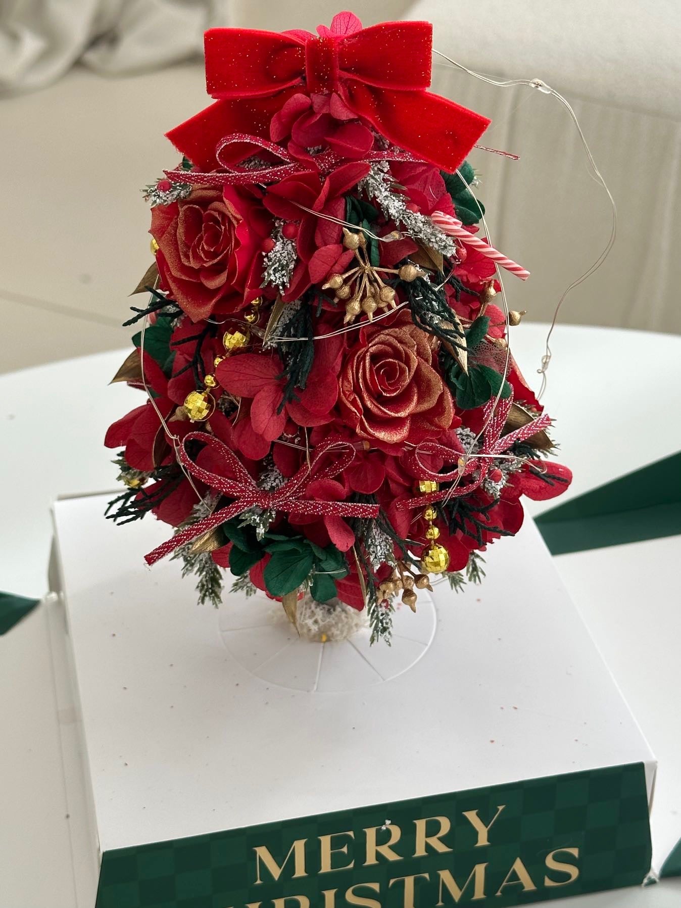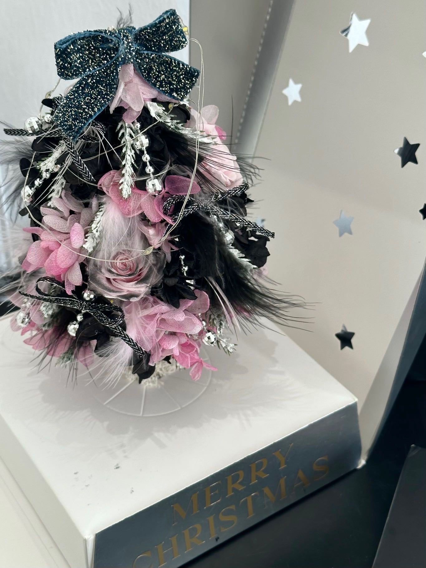 A symphony of blossoms and bows, Ribbon Serenade celebrates the joy of Christmas with elegance and charm. Each handcrafted tree is adorned with delicate roses and shimmering ribbons, their graceful ties dancing like music notes upon a winter breeze. Wrapped in festive sparkle and tender color palettes, it is both a centerpiece and a keepsake, radiating warmth, romance, and the timeless beauty of the season. Gift it as a melody of love, and let its ribbons serenade hearts long after the holidays.