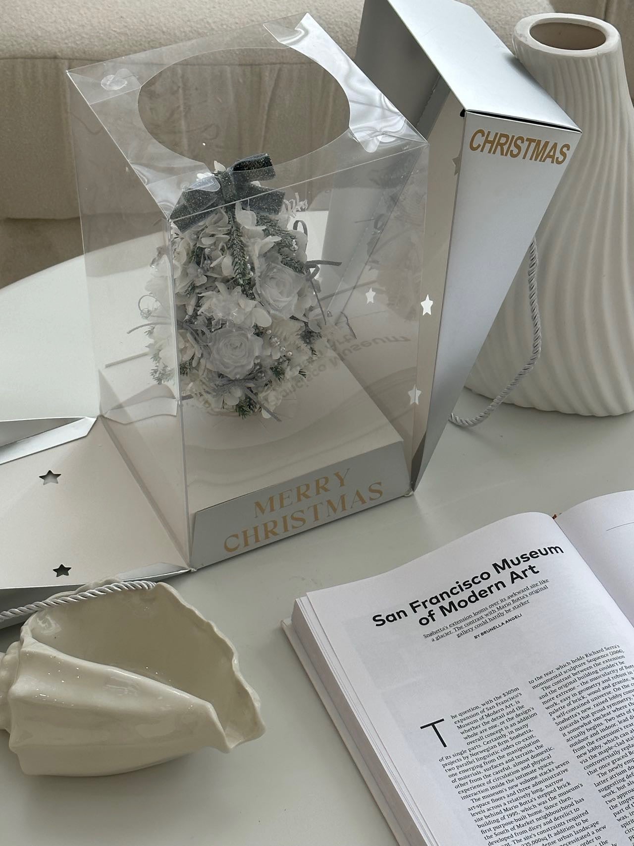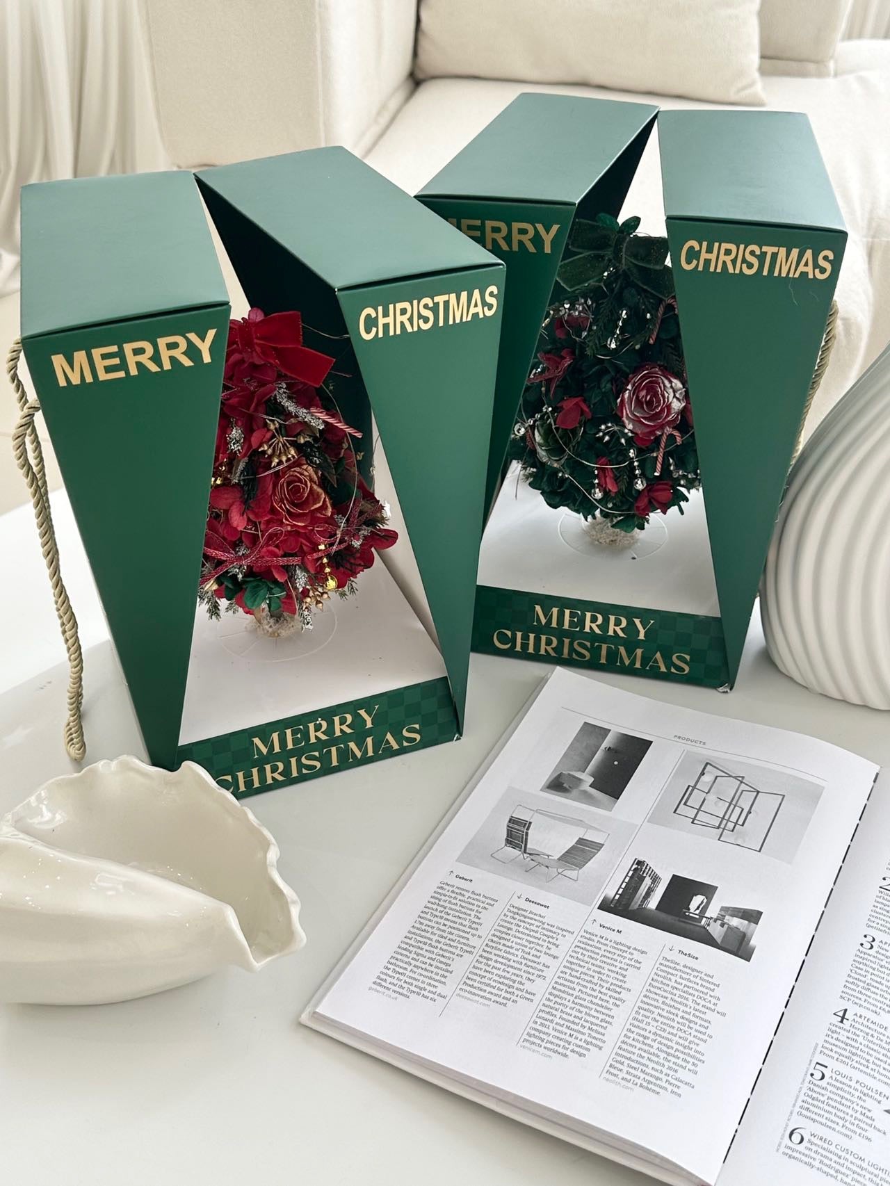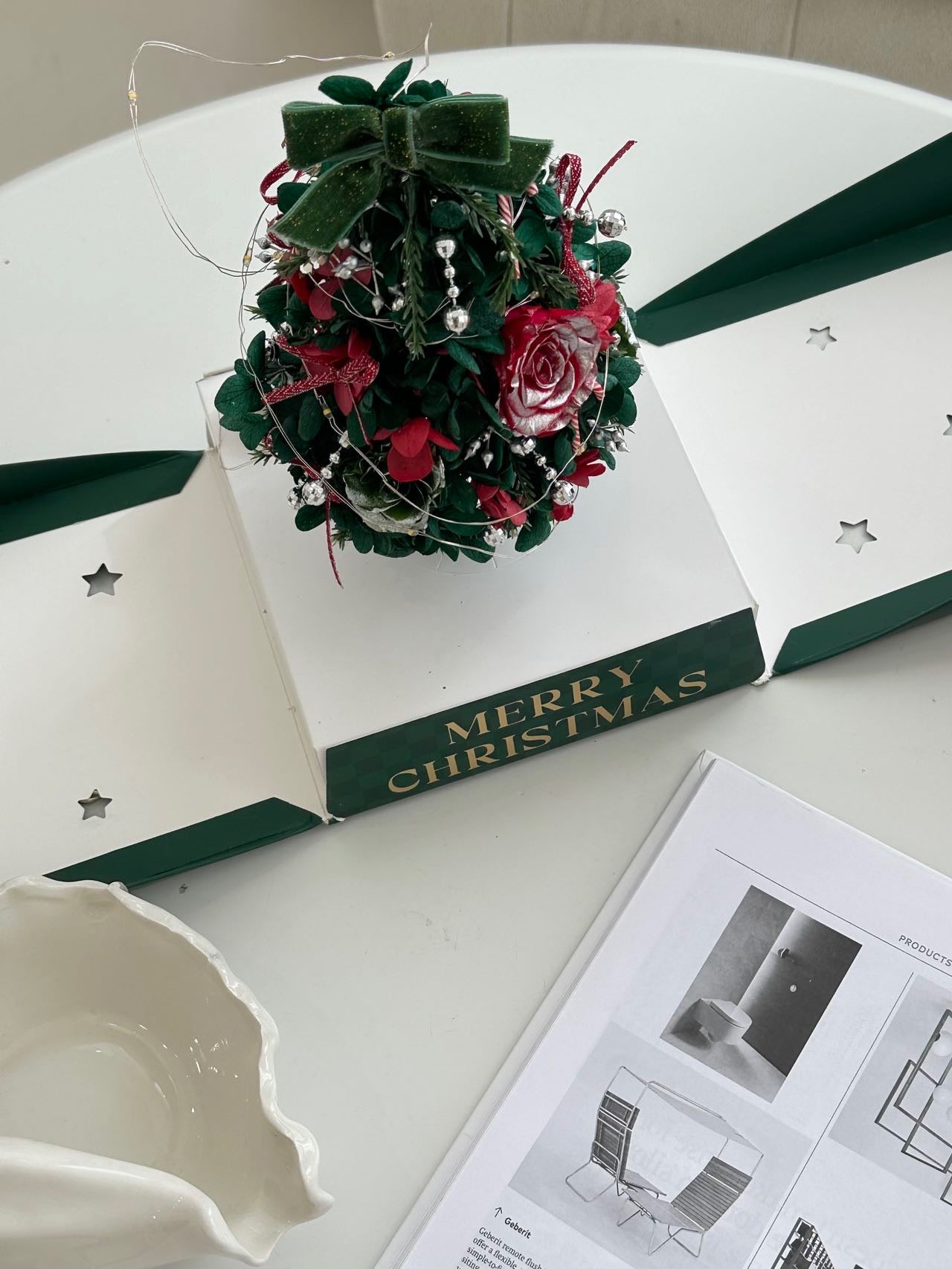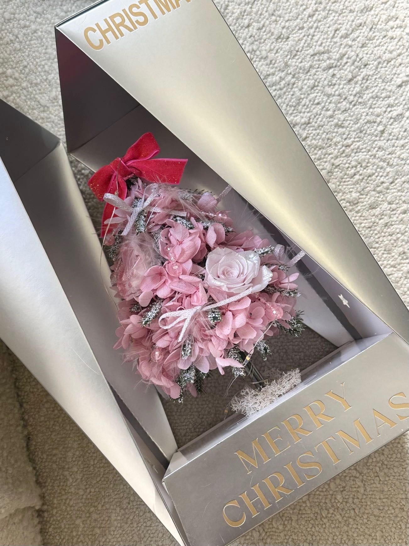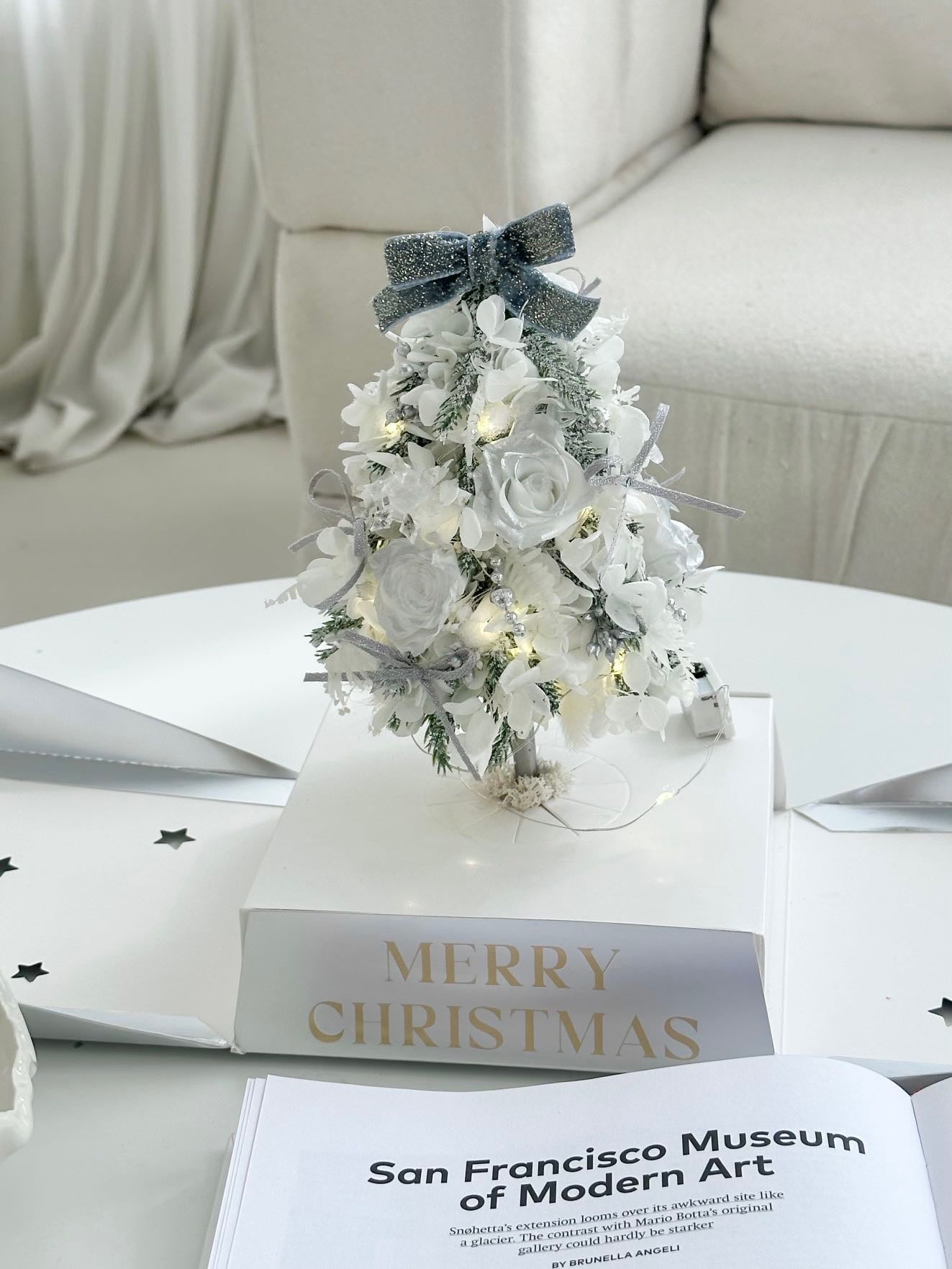 A symphony of blossoms and bows, Ribbon Serenade celebrates the joy of Christmas with elegance and charm. Each handcrafted tree is adorned with delicate roses and shimmering ribbons, their graceful ties dancing like music notes upon a winter breeze. Wrapped in festive sparkle and tender color palettes, it is both a centerpiece and a keepsake, radiating warmth, romance, and the timeless beauty of the season. Gift it as a melody of love, and let its ribbons serenade hearts long after the holidays.