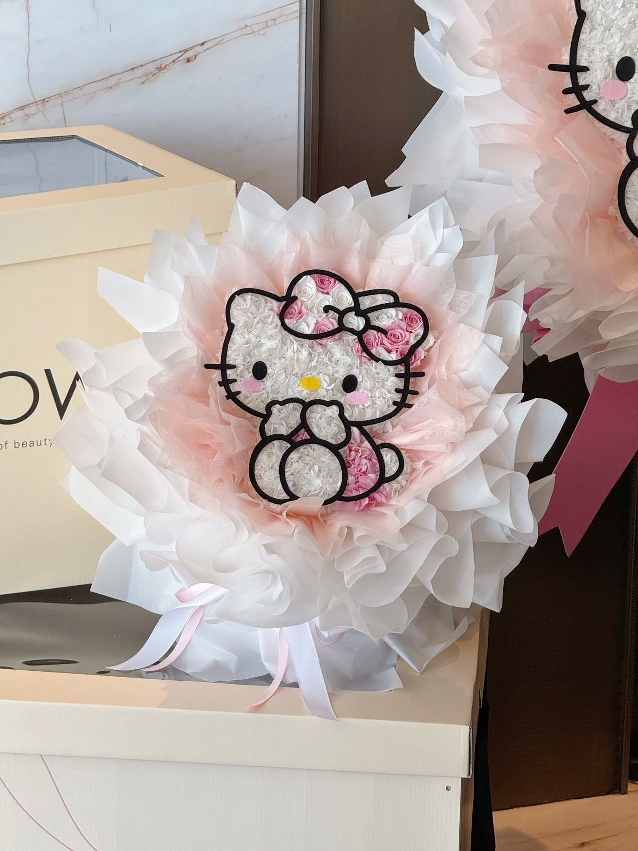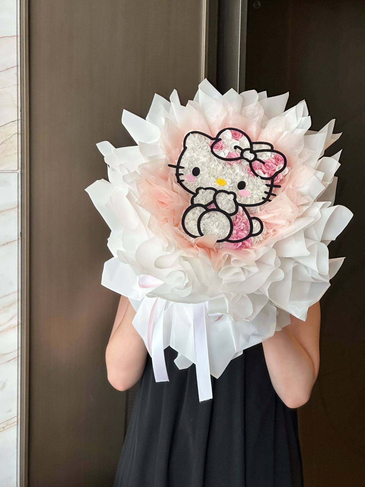 Delicate and radiant, Shy Glow is a bouquet that captures the charm of a girl who shines even in her quietest moments. Crafted in soft whites and tender blush, with hints of pink roses woven into her bow, it reflects innocence touched by elegance — the gentle beauty of someone who doesn’t seek the spotlight, yet lights up the room effortlessly. This bouquet is a tribute to your shy and shiny girl, a love that glimmers softly but lasts forever.