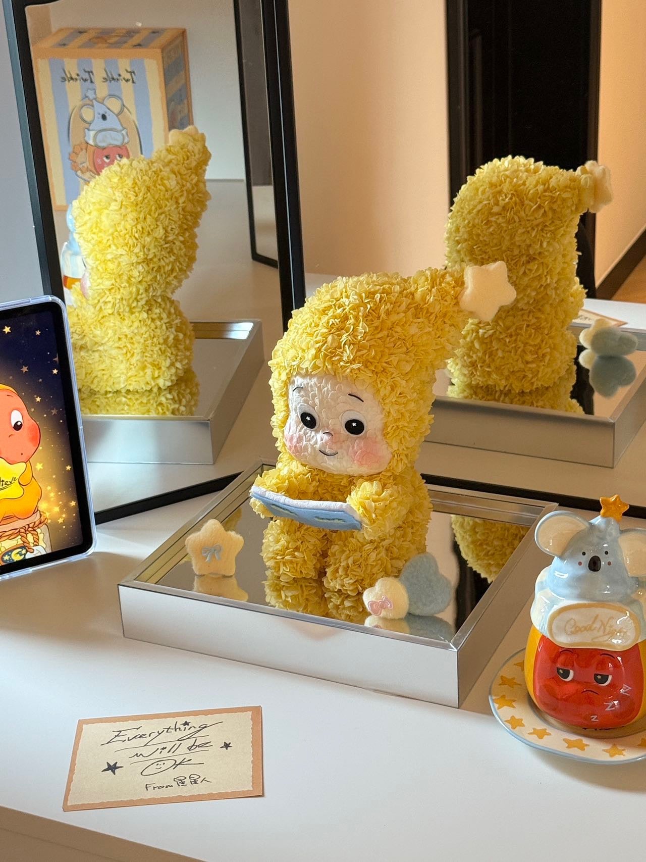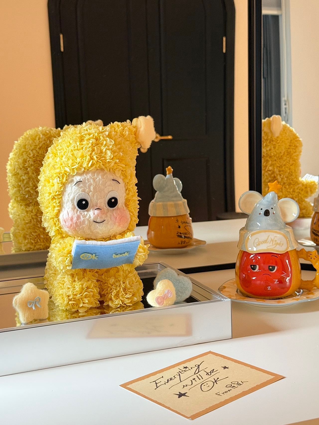 Wrapped in a coat of golden blossoms, Starlight Embrace carries the warmth of the sun and the quiet glow of the stars. Gentle yet steady, it reminds you that even in the darkest nights, there is always a light keeping watch, softly whispering that everything will be okay. Like love that stays constant and hope that never fades, this preserved flower figure is both a healing companion and a radiant promise of eternity.